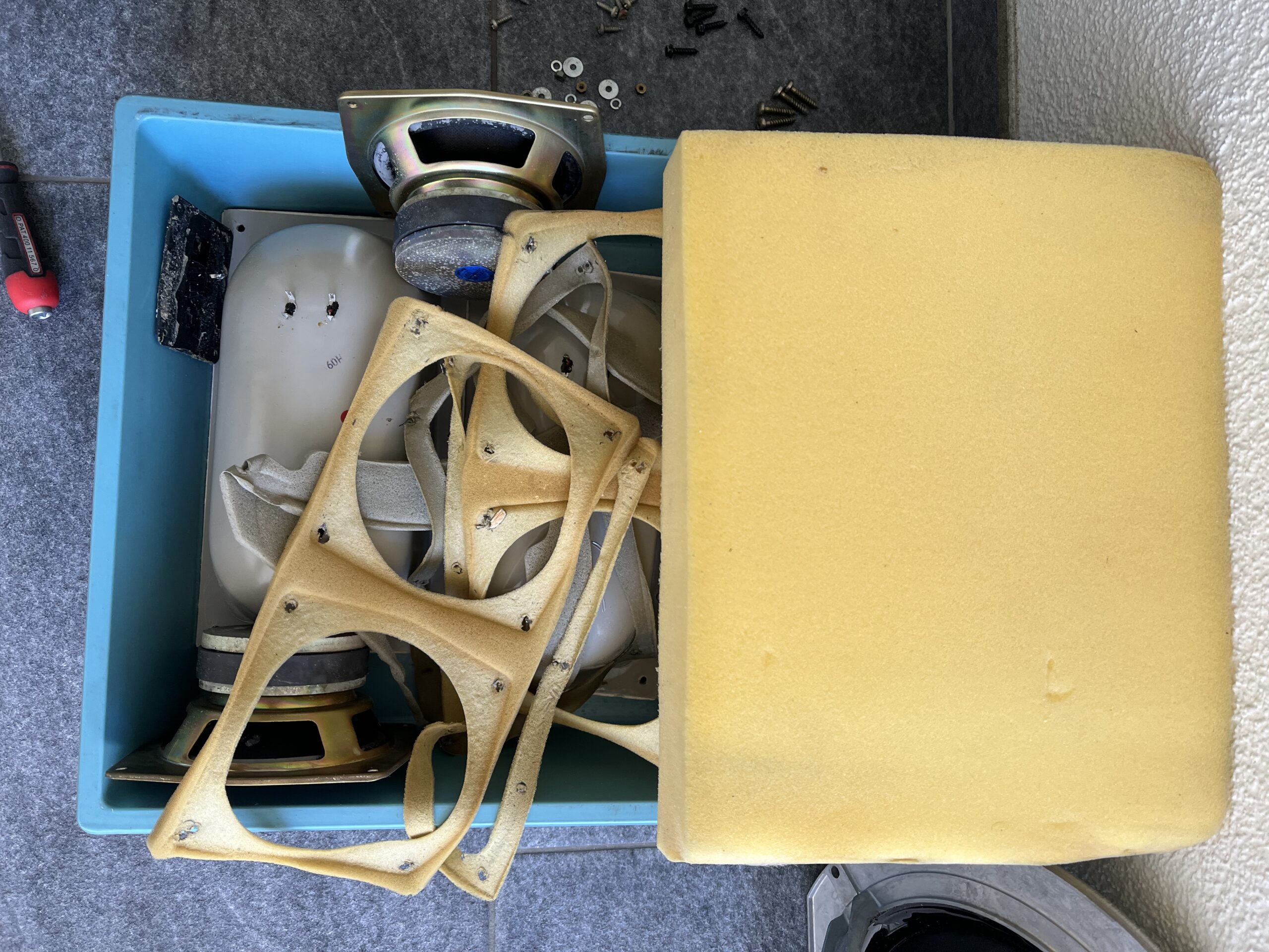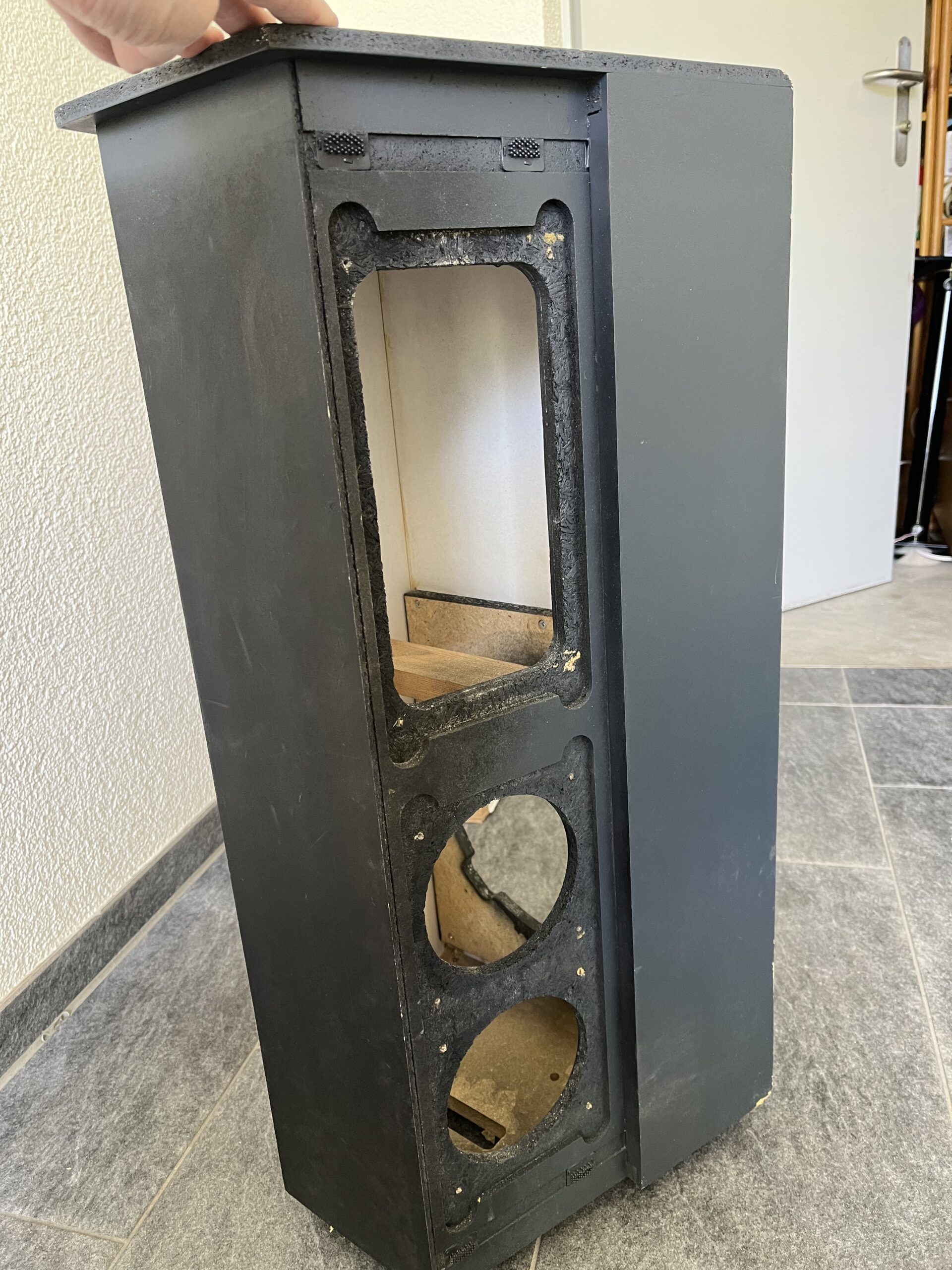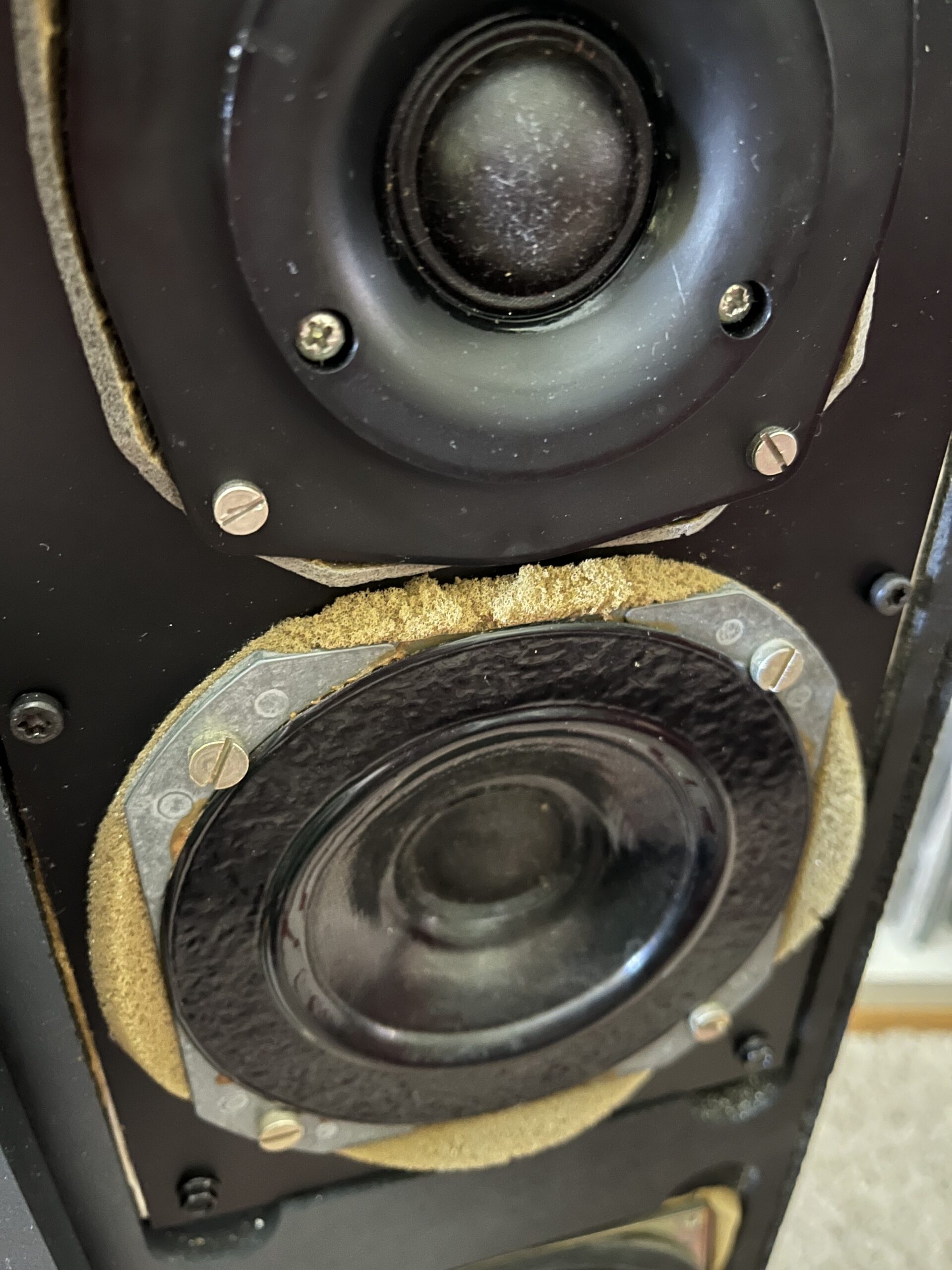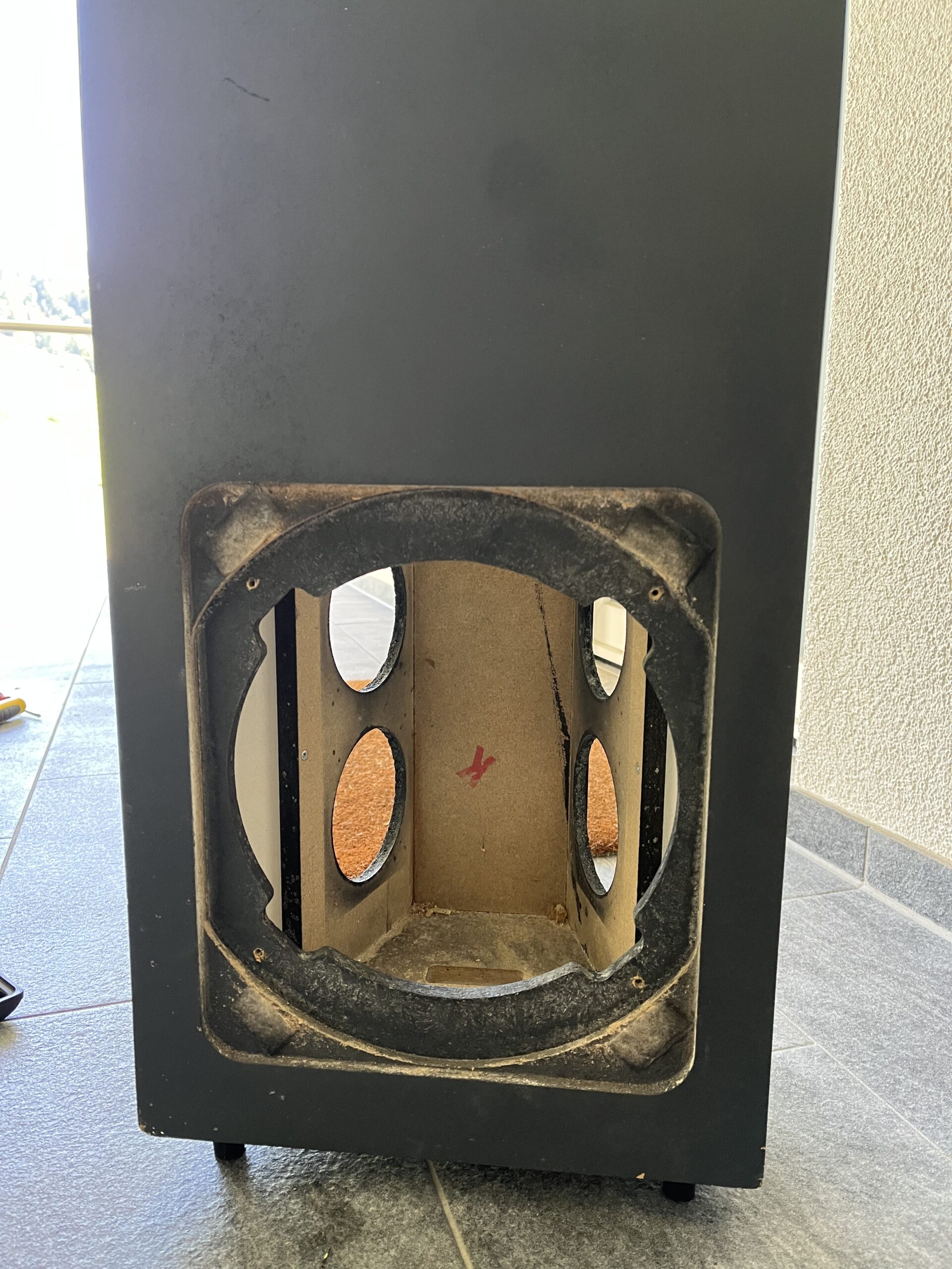 Der optische Zustand war vielleicht nicht gerade erbärmlich, kann aber mit Fug und Recht als hässlich bezeichnet werden. Der Lautsprecher kommt an sich ja schon in einer eher extravaganten Formensprache daher, dann noch verlottert, mit abgenagten Kanten und schlechter Lackierung macht es das Gesamtbild nicht ansprechender. Wäre da nicht der Klang. Nachdem mir die Bassarmut der „kleinen“ JBL XPL 90 nicht mehr gefallen hat und ich tatsächlich vom tonalen Verbiegen mittels EQ wegkommen wollte, habe ich sie einfach mal wieder testweise in meinem Hörraum aufgestellt. Und war begeistert! Differenzierter Klang, schönes Stereobild und Bühne sowie ein ansprechender, knackiger Bass – super. Aber was ist mit den Höhen? Da verzerrt doch was bei entsprechend anspruchsvollen Passagen. Sollte etwa ein Tweeter hinüber sein?